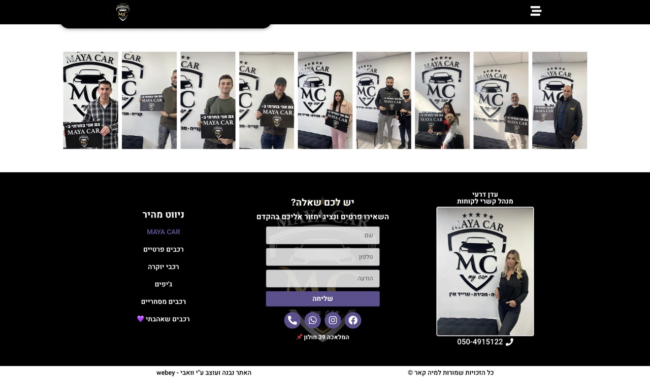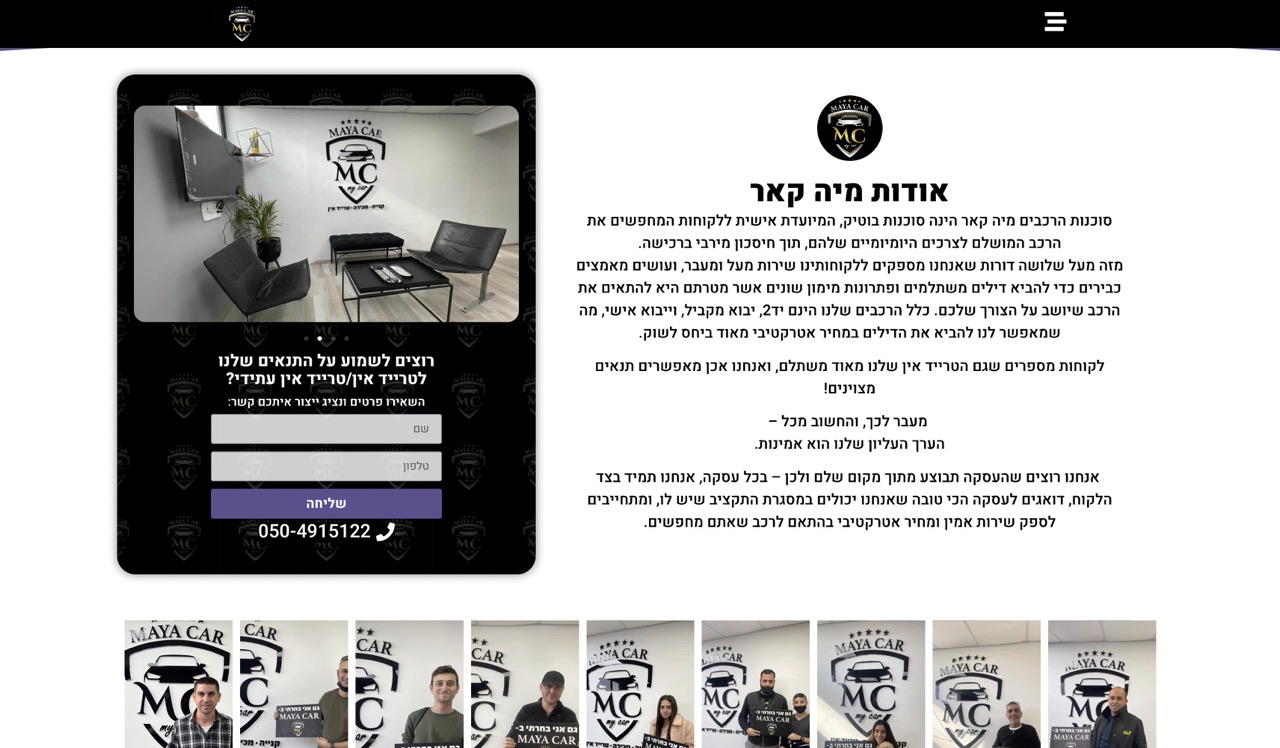 מאיה קאר היא סוכנות רכבים שעוזרת לצרכנים לחסוך כסף ברכישת הרכב הבא שלהם. עבודתנו בבניית אתר הקטלוג לסוכנות שמה דגש רב על המחשת השירות בפן הויזואלי תוך הצגת השירותים וה’אודות’ על החברה בצורה פשוטה וקלה להבנה לכולם.