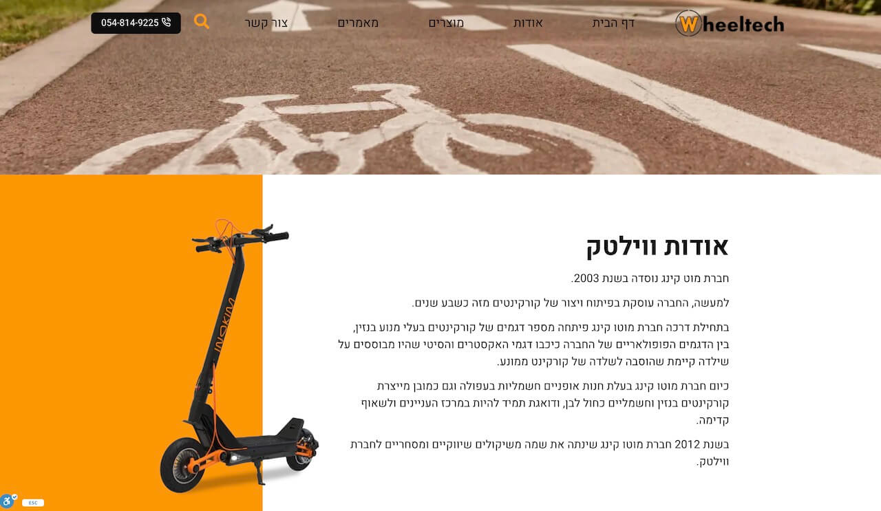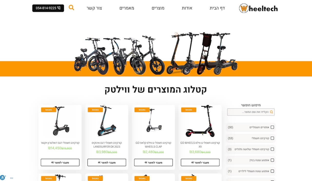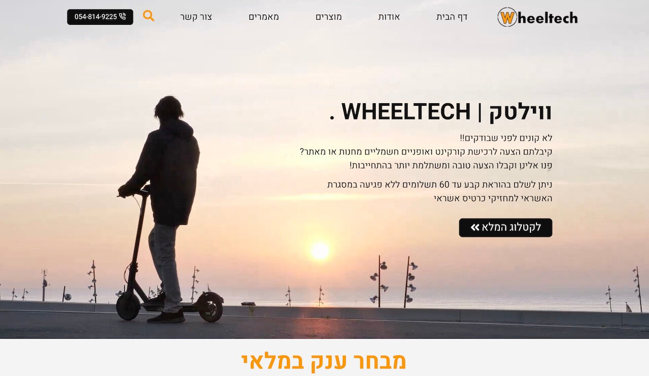 בנינו אתר קטלוג אשר מציג את כל המוצרים של חברת ווילטק, המשווקת כלי תחבורה חשמליים להתניידות.